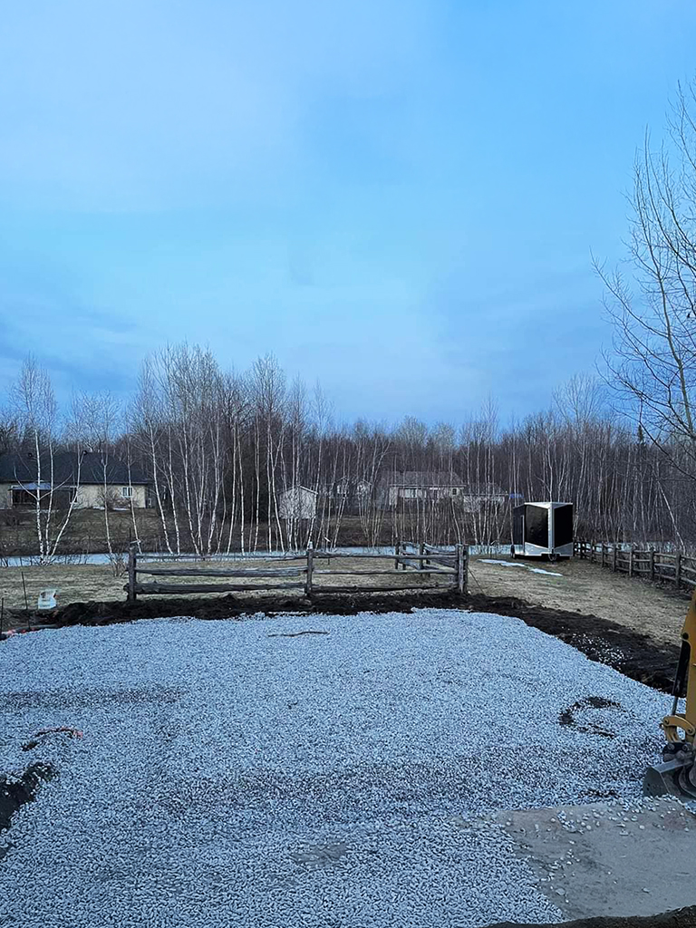 Au fil des années, nous avons eu l’opportunité de participer à une vaste gamme de projets d’excavation, tant pour des clients résidentiels que commerciaux. Que ce soit pour des travaux de terrassement, d’installation de drains français ou de fondations, chaque réalisation est le reflet de notre savoir-faire, de notre engagement à fournir un travail de qualité et de notre attention aux moindres détails. Découvrez nos projets récents et voyez comment nous transformons vos idées en résultats concrets, durables et sur mesure.